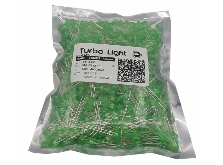 برند : turbo light - HG - os رنگ : سبز طول موج : 520-522.5 nm ولتاژ کاری : 2.8-3.0 v شدت نور : 3500-4000 MCD تعداد در هر بسته : 1000 pccs کشور تولید کننده : تایوان - چین